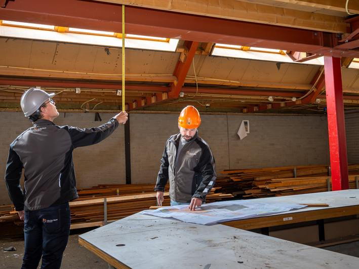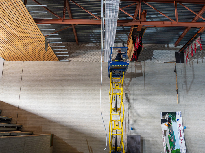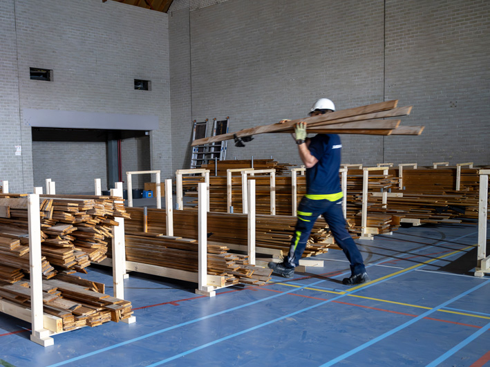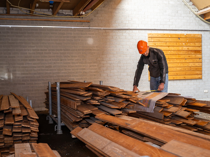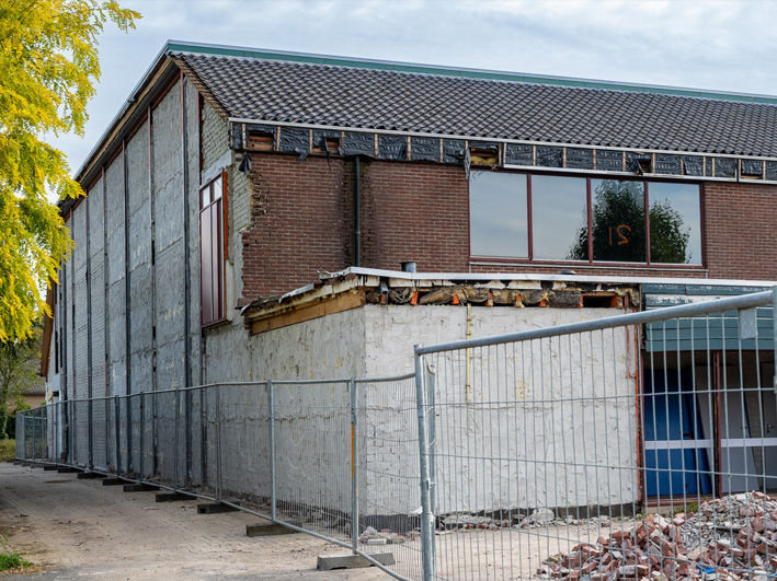 In Zetten wordt het bestaande multifunctionele centrum nieuw leven ingeblazen. Maar niet door het simpelweg te slopen en opnieuw op te bouwen. Hier kiezen we voor oogsten. Dat begint bij een zorgvuldige demontagefase waarin we waardevolle materialen uit het bestaande gebouw veiligstellen. “We halen eruit wat nog goed is,” vertelt projectleider Bart Koenen. “Denk aan houten lattenplafonds, stalen liggers, houten balklagen en zelfs gevelstenen. Die worden schoongemaakt, gekeurd en vervolgens opnieuw toegepast in de nieuwbouw.”