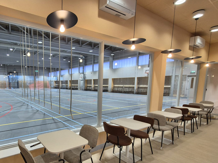 Een heldere structuur, een functionele sporthal en een warm aangeklede horeca omvatten het interieur, waarbij zowel vanuit de entreehal als de horeca direct zicht is in de sporthal. Het ontwerp van de sporthal combineert transparantie en duurzaamheid met creativiteit en functionaliteit. Door het gebruik van duurzame materialen, speelse vormen en een focus op het zicht op de sport, is deze sporthal niet alleen een plek om te sporten, maar een levendig, duurzaam middelpunt van de gemeenschap.